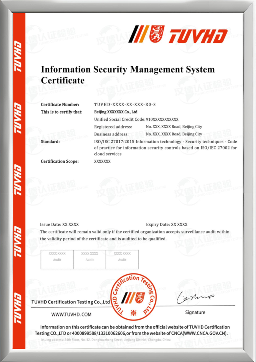 版权所有:汉德认证检验股份有限公司(TUVHD)地址:中国•成都•锦江区东华正街42号四川广电国际大厦24楼(天府广场旁)